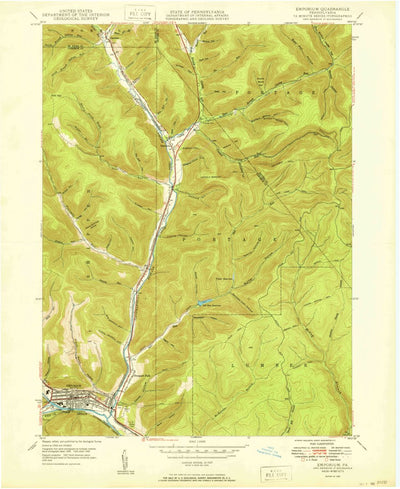 A 1950 historical topographic map of Emporium in Pennsylvania produced by the United States Geological Survey (USGS). It shows contour lines, place names, water bodies and roads. Map services and data available from U.S. Geological Survey, National Geospatial Program. Map was obtained from https:...