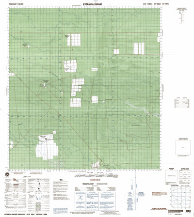 This map is part of a series of 1:100,000 scale topographic maps covering Paraguay. In addition to topography, these maps display contour lines, domestic boundaries, major settlements, railroads, airfields, and roads.