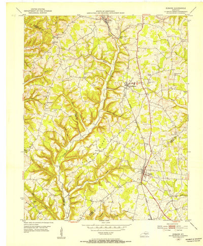 A 1952 historical topographic map of Eubank in Kentucky produced by the United States Geological Survey (USGS). It shows contour lines, place names, water bodies and roads. Map services and data available from U.S. Geological Survey, National Geospatial Program. Map was obtained from https://www....