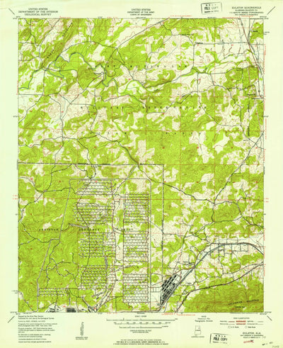 A 1947 historical topographic map of Eulaton in Alabama produced by the United States Geological Survey (USGS). It shows contour lines, place names, water bodies and roads. Map services and data available from U.S. Geological Survey, National Geospatial Program. Map was obtained from https://www....