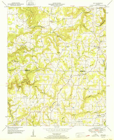 A 1951 historical topographic map of Eva in Alabama produced by the United States Geological Survey (USGS). It shows contour lines, place names, water bodies and roads. Map services and data available from U.S. Geological Survey, National Geospatial Program. Map was obtained from https://www.scie...