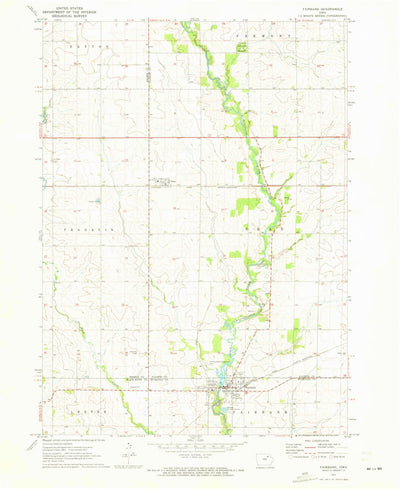 A 1971 historical topographic map of Fairbank in Iowa produced by the United States Geological Survey (USGS). It shows contour lines, place names, water bodies and roads. Map services and data available from U.S. Geological Survey, National Geospatial Program. Map was obtained from https://www.sc...