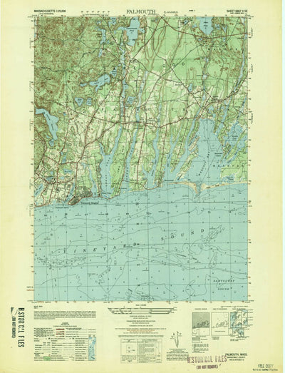 A 1948 historical topographic map of Falmouth in Massachusetts produced by the United States Geological Survey (USGS). It shows contour lines, place names, water bodies and roads. Map services and data available from U.S. Geological Survey, National Geospatial Program. Map was obtained from https...