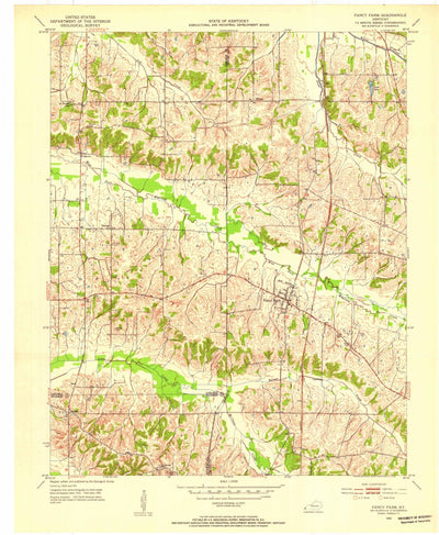 A 1952 historical topographic map of Fancy Farm in Kentucky produced by the United States Geological Survey (USGS). It shows contour lines, place names, water bodies and roads. Map services and data available from U.S. Geological Survey, National Geospatial Program. Map was obtained from https://...