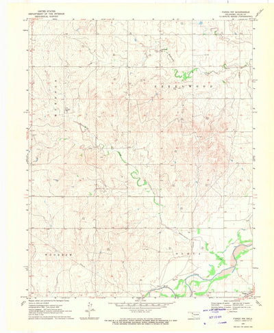 A 1969 historical topographic map of Fargo NW in Oklahoma produced by the United States Geological Survey (USGS). It shows contour lines, place names, water bodies and roads. Map services and data available from U.S. Geological Survey, National Geospatial Program. Map was obtained from https://ww...