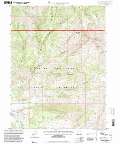 A 1996 historical topographic map of Farm Creek Peak in Utah produced by the United States Geological Survey (USGS). It shows contour lines, place names, water bodies and roads. Map services and data available from U.S. Geological Survey, National Geospatial Program. Map was obtained from https:/...