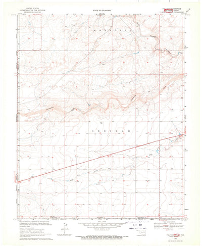 A 1969 historical topographic map of Felt SW in Oklahoma produced by the United States Geological Survey (USGS). It shows contour lines, place names, water bodies and roads. Map services and data available from U.S. Geological Survey, National Geospatial Program. Map was obtained from https://www...