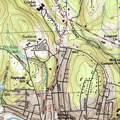 A 1988 historical topographic map of Fitchburg in Massachusetts produced by the United States Geological Survey (USGS). It shows contour lines, place names, water bodies and roads. Map services and data available from U.S. Geological Survey, National Geospatial Program. Map was obtained from http...