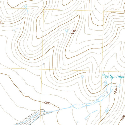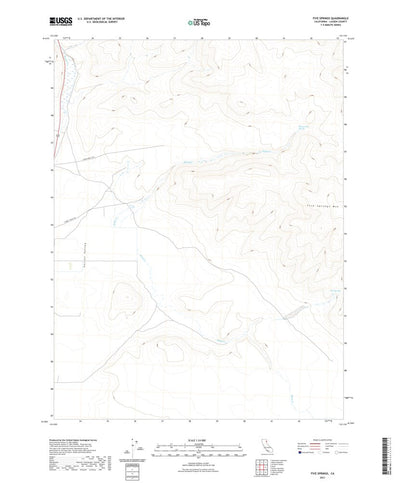 A digital topographic map of Five Springs in California produced by the United States Geological Survey (USGS) in 2021. The map is part of the National Map series of 7.5 minute quadrangle maps. It shows contour lines, place names, water bodies and roads. Map services and data available from U.S. ...