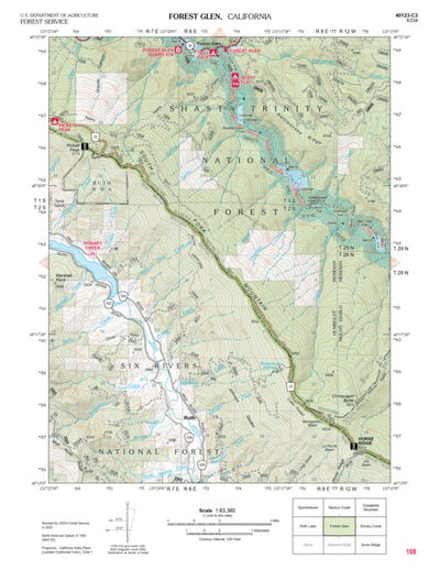 National Forest Quadrangle Topographic Maps show 7.5 minute sections of National Forests at 1 inch to the mile scale. The maps are individual sheets from the more complete printed atlas available for sale from the USDA Forest Service. Map features are roads, trails, recreation facilities, and lan...