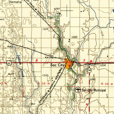 A 1958 historical topographic map of Fort Dodge in Iowa produced by the United States Geological Survey (USGS). It shows contour lines, place names, water bodies and roads. Map services and data available from U.S. Geological Survey, National Geospatial Program. Map was obtained from https://www....