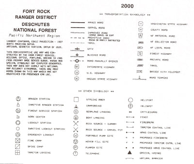 There are two bundled maps for the Fort Rock Ranger District, a north and south half. The legend informat...