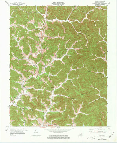 A 1974 historical topographic map of Fount in Kentucky produced by the United States Geological Survey (USGS). It shows contour lines, place names, water bodies and roads. Map services and data available from U.S. Geological Survey, National Geospatial Program. Map was obtained from https://www.s...