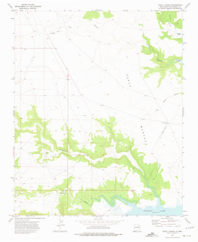 A 1972 historical topographic map of Four V Ranch in New Mexico produced by the United States Geological Survey (USGS). It shows contour lines, place names, water bodies and roads. Map services and data available from U.S. Geological Survey, National Geospatial Program. Map was obtained from http...