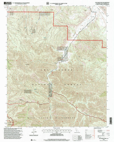 A 1995 historical topographic map of Fox Mountain in California produced by the United States Geological Survey (USGS). It shows contour lines, place names, water bodies and roads. Map services and data available from U.S. Geological Survey, National Geospatial Program. Map was obtained from http...