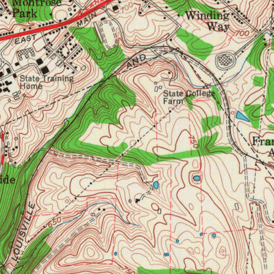 A 1959 historical topographic map of Frankfort East in Kentucky produced by the United States Geological Survey (USGS). It shows contour lines, place names, water bodies and roads. Map services and data available from U.S. Geological Survey, National Geospatial Program. Map was obtained from http...