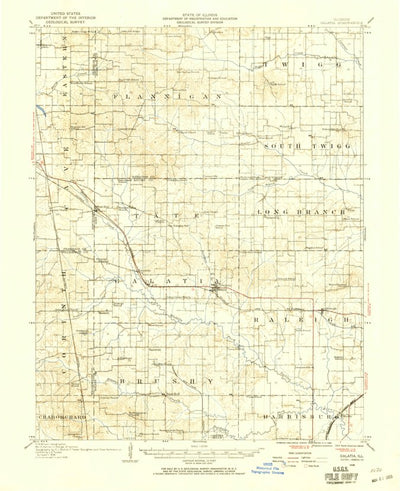 A 1938 historical topographic map of Galatia in Illinois produced by the United States Geological Survey (USGS). It shows contour lines, place names, water bodies and roads. Map services and data available from U.S. Geological Survey, National Geospatial Program. Map was obtained from https://www...