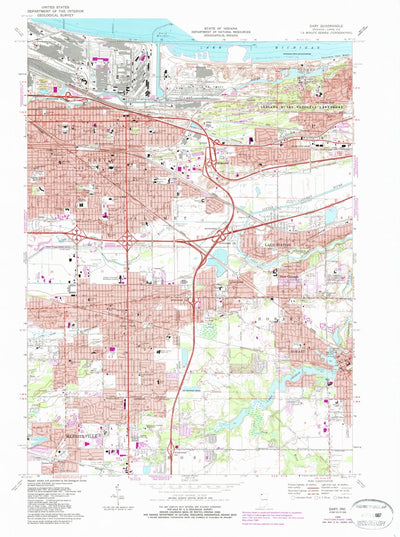A 1968 historical topographic map of Gary in Indiana produced by the United States Geological Survey (USGS). It shows contour lines, place names, water bodies and roads. Map services and data available from U.S. Geological Survey, National Geospatial Program. Map was obtained from https://www.sci...