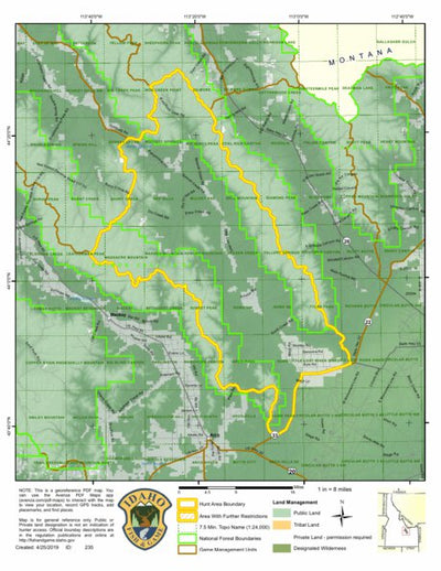 This map is part of the 2019 Hunt Area Map Index produced by the Idaho Department Fish & Game and uploaded to Avenza with full permission from the department. This map depicts the General Season Hunt Areas for Wolf in Unit 51, which encompasses All of Unit 51.
