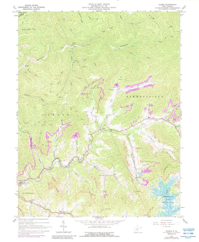 A 1967 historical topographic map of Gilboa in West Virginia produced by the United States Geological Survey (USGS). It shows contour lines, place names, water bodies and roads. Map services and data available from U.S. Geological Survey, National Geospatial Program. Map was obtained from https:/...