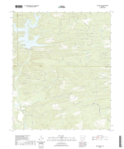 A digital topographic map of Gillham Dam in Arkansas produced by the United States Geological Survey (USGS) in 2020. The map is part of the National Map series of 7.5 minute quadrangle maps. It shows contour lines, place names, water bodies and roads. Map services and data available from U.S. Geo...