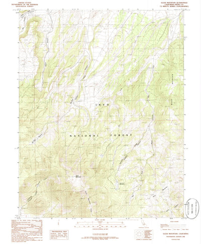 A 1986 historical topographic map of Glass Mountain in California produced by the United States Geological Survey (USGS). It shows contour lines, place names, water bodies and roads. Map services and data available from U.S. Geological Survey, National Geospatial Program. Map was obtained from ht...