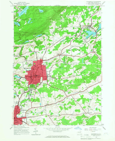A 1945 historical topographic map of Gloversville in New York produced by the United States Geological Survey (USGS). It shows contour lines, place names, water bodies and roads. Map services and data available from U.S. Geological Survey, National Geospatial Program. Map was obtained from https:...