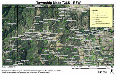 Township Range & Section map with transportation road systems and historical points of interest using 2018 Aerial Imagery.