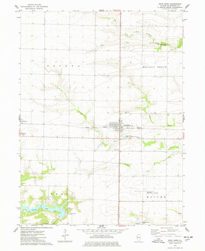 A 1974 historical topographic map of Good Hope in Illinois produced by the United States Geological Survey (USGS). It shows contour lines, place names, water bodies and roads. Map services and data available from U.S. Geological Survey, National Geospatial Program. Map was obtained from https://w...