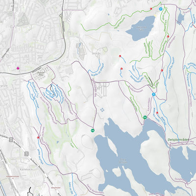 Map of the Göteborg mountain bike trails. Including some POI such as parking locations.
