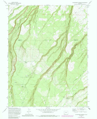 A 1973 historical topographic map of Government Springs in Colorado produced by the United States Geological Survey (USGS). It shows contour lines, place names, water bodies and roads. Map services and data available from U.S. Geological Survey, National Geospatial Program. Map was obtained from ...