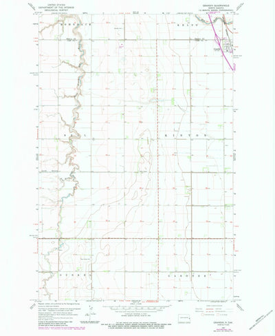 A 1967 historical topographic map of Grandin in North Dakota produced by the United States Geological Survey (USGS). It shows contour lines, place names, water bodies and roads. Map services and data available from U.S. Geological Survey, National Geospatial Program. Map was obtained from https:/...