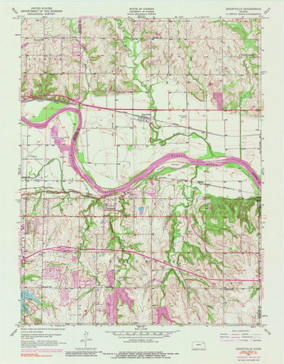 A 1950 historical topographic map of Grantville in Kansas produced by the United States Geological Survey (USGS). It shows contour lines, place names, water bodies and roads. Map services and data available from U.S. Geological Survey, National Geospatial Program. Map was obtained from https://ww...