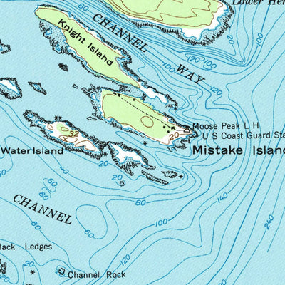 A 1950 historical topographic map of Great Wass Island in Maine produced by the United States Geological Survey (USGS). It shows contour lines, place names, water bodies and roads. Map services and data available from U.S. Geological Survey, National Geospatial Program. Map was obtained from http...