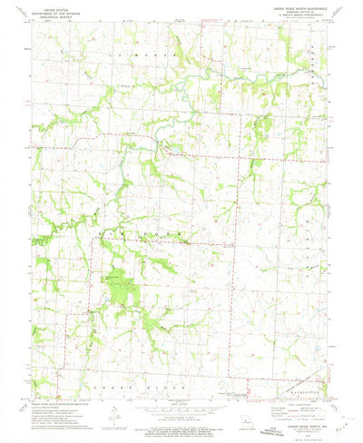 A 1973 historical topographic map of Green Ridge North in Missouri produced by the United States Geological Survey (USGS). It shows contour lines, place names, water bodies and roads. Map services and data available from U.S. Geological Survey, National Geospatial Program. Map was obtained from h...