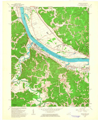 A 1961 historical topographic map of Greenup in Kentucky produced by the United States Geological Survey (USGS). It shows contour lines, place names, water bodies and roads. Map services and data available from U.S. Geological Survey, National Geospatial Program. Map was obtained from https://www...