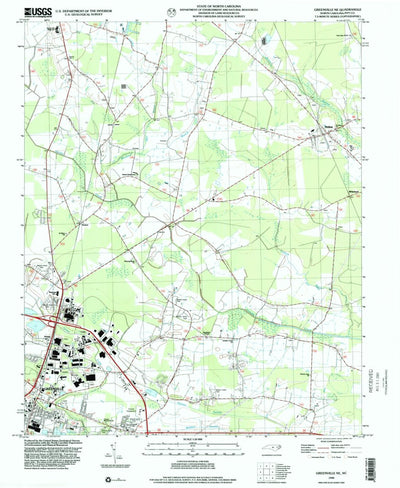 A 1998 historical topographic map of Greenville NE in North Carolina produced by the United States Geological Survey (USGS). It shows contour lines, place names, water bodies and roads. Map services and data available from U.S. Geological Survey, National Geospatial Program. Map was obtained from...