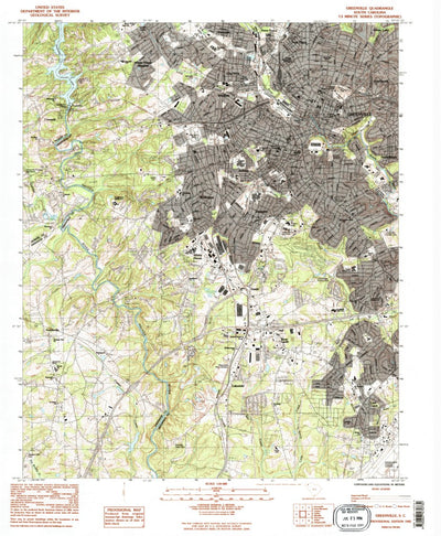 A 1983 historical topographic map of Greenville in South Carolina produced by the United States Geological Survey (USGS). It shows contour lines, place names, water bodies and roads. Map services and data available from U.S. Geological Survey, National Geospatial Program. Map was obtained from ht...