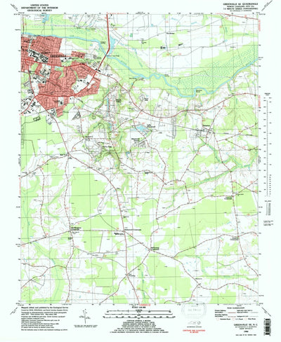 A 1982 historical topographic map of Greenville SE in North Carolina produced by the United States Geological Survey (USGS). It shows contour lines, place names, water bodies and roads. Map services and data available from U.S. Geological Survey, National Geospatial Program. Map was obtained from...