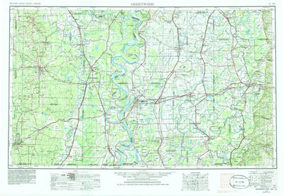 A 1953 historical topographic map of Greenwood in Mississippi produced by the United States Geological Survey (USGS). It shows contour lines, place names, water bodies and roads. Map services and data available from U.S. Geological Survey, National Geospatial Program. Map was obtained from https:...