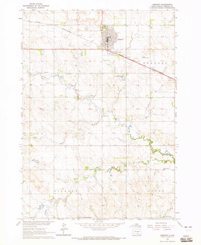 A 1964 historical topographic map of Gregory in South Dakota produced by the United States Geological Survey (USGS). It shows contour lines, place names, water bodies and roads. Map services and data available from U.S. Geological Survey, National Geospatial Program. Map was obtained from https:/...