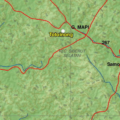 This map is part of a series of 1:250,000 scale topographic maps covering the entirety of Indonesia. In addition to topography, these maps display contour lines, domestic boundaries, major settlements and roads.