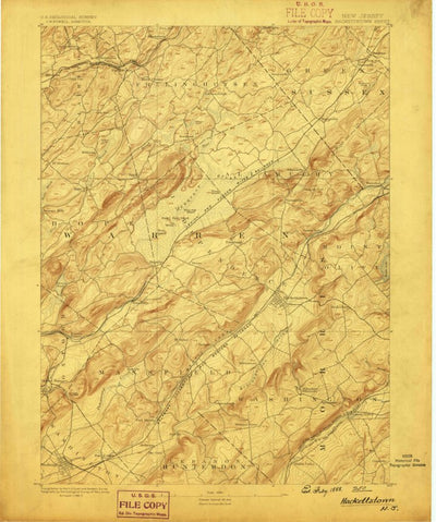 A 1888 historical topographic map of Hackettstown in New Jersey produced by the United States Geological Survey (USGS). It shows contour lines, place names, water bodies and roads. Map services and data available from U.S. Geological Survey, National Geospatial Program. Map was obtained from http...