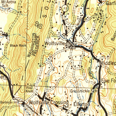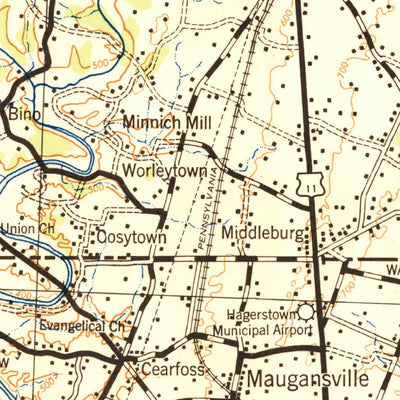 A 1943 historical topographic map of Hagerstown in Maryland produced by the United States Geological Survey (USGS). It shows contour lines, place names, water bodies and roads. Map services and data available from U.S. Geological Survey, National Geospatial Program. Map was obtained from https://...