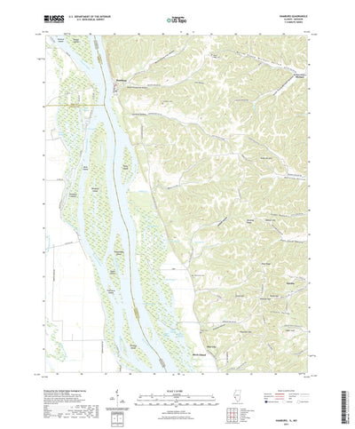A digital topographic map of Hamburg in Illinois produced by the United States Geological Survey (USGS) in 2021. The map is part of the National Map series of 7.5 minute quadrangle maps. It shows contour lines, place names, water bodies and roads. Map services and data available from U.S. Geologi...