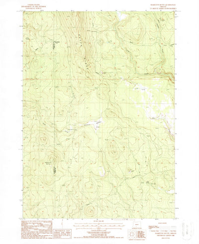 A 1988 historical topographic map of Hamelton Butte in Oregon produced by the United States Geological Survey (USGS). It shows contour lines, place names, water bodies and roads. Map services and data available from U.S. Geological Survey, National Geospatial Program. Map was obtained from https:...