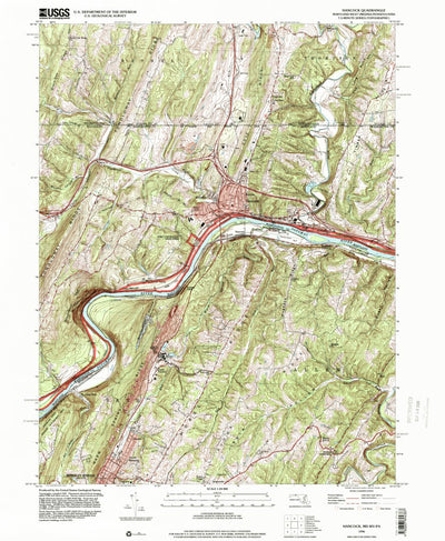 A 1996 historical topographic map of Hancock in Maryland produced by the United States Geological Survey (USGS). It shows contour lines, place names, water bodies and roads. Map services and data available from U.S. Geological Survey, National Geospatial Program. Map was obtained from https://www...