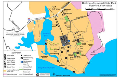 Enjoy the panoramic views of Long Island Sound from Eolia, the elegant summer mansion of the Harkness family set on over 230 seaside acres of sweeping lawns, with stately trees and spectacular gardens.