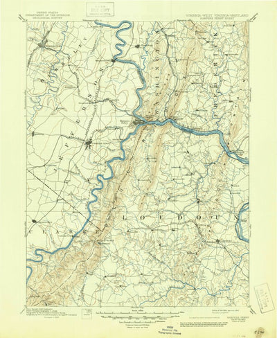A 1893 historical topographic map of Harpers Ferry in Virginia produced by the United States Geological Survey (USGS). It shows contour lines, place names, water bodies and roads. Map services and data available from U.S. Geological Survey, National Geospatial Program. Map was obtained from https...