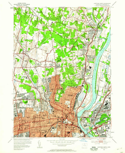 A 1952 historical topographic map of Hartford North in Connecticut produced by the United States Geological Survey (USGS). It shows contour lines, place names, water bodies and roads. Map services and data available from U.S. Geological Survey, National Geospatial Program. Map was obtained from h...